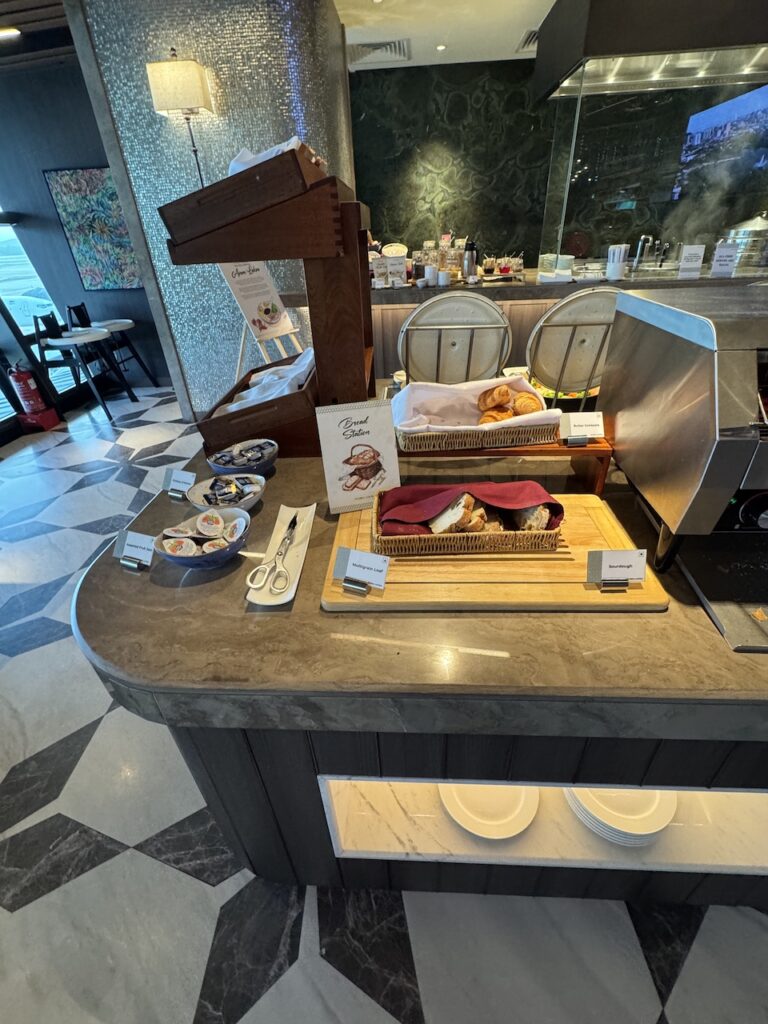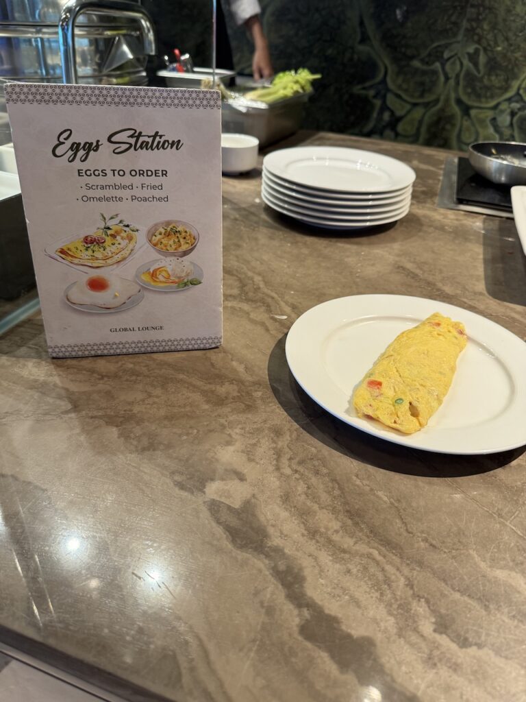 Walking through the entire lounge, you’ll find a buffet with live cooking station. During my breakfast visit, I had an excellent omelette made to order.